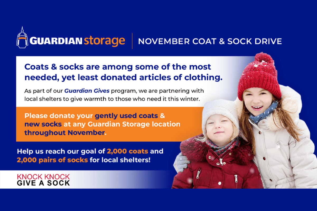 This November, Guardian Storage invites you to help keep our neighbors warm by donating